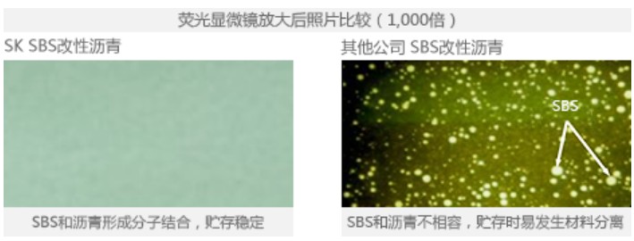 在这一过程中,沥青的物理结构与化学结构发生变化,沥青与高分子聚合物形成了一种互穿网格结构,与一般改性沥青比,具有更好的稳定性和持久性。